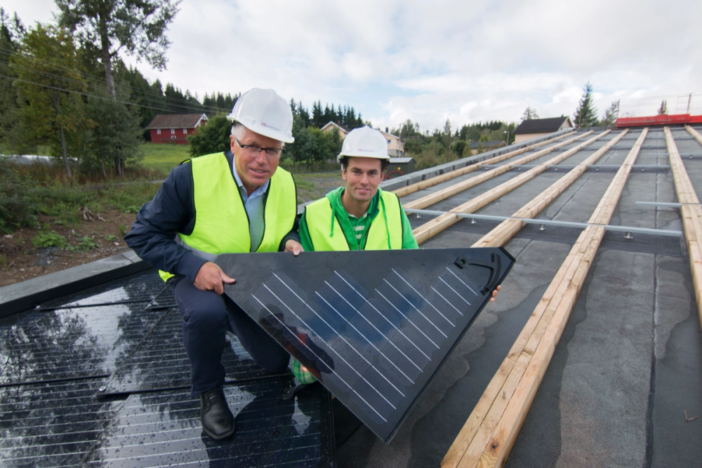 - Skandinavias største takintegrerte solcelleanlegg på 1300 m2 og 156 kW installert effekt og beregnet produksjon på 97.000 kWh/år