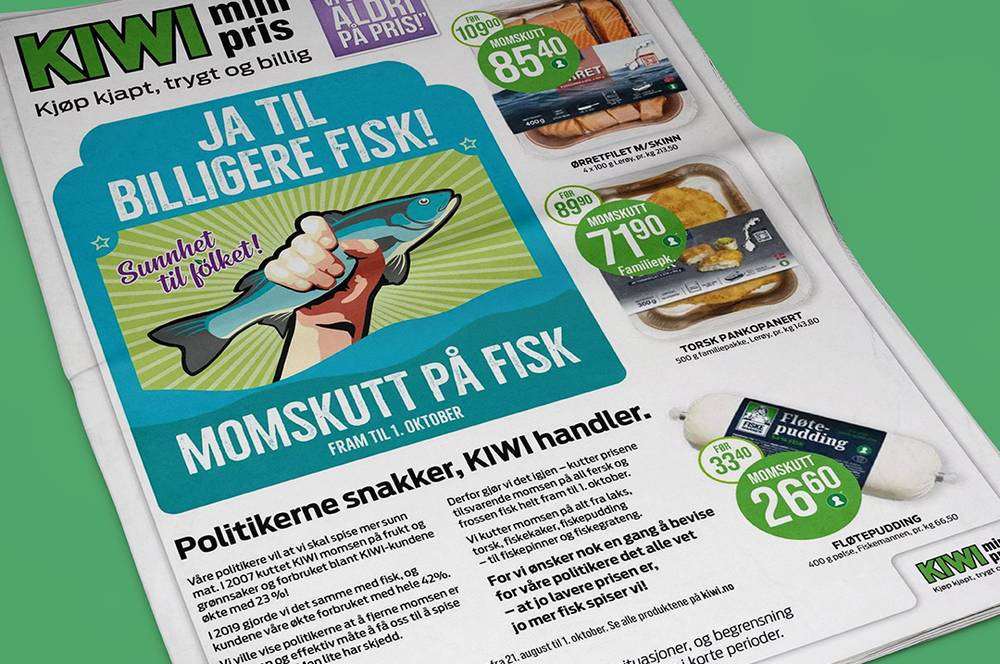 21. august startet KIWI priskrig på fisk ved å kutte prisene tilsvarende momsen. Kampanjen varte til 1. oktober, og målet var å vise politikerne at kundene velger sunnere når prisen på sunne varer blir lavere. Lavpriskonkurrentene fulgte etter, og kuttet prisene i samme periode.