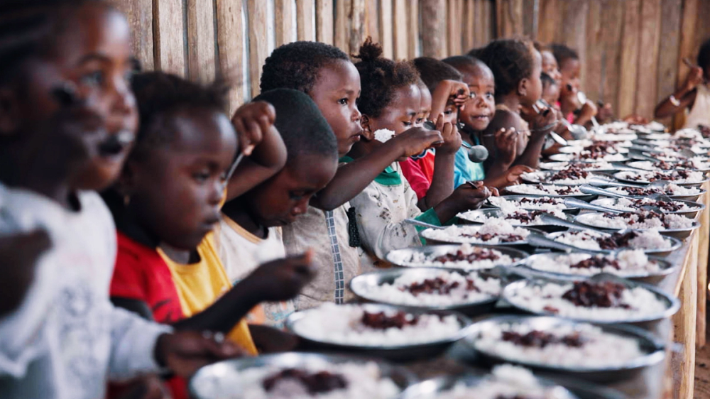 Med ekstra støtte fra Verdens Matvareprogram har de matservering én gang om dagen. Utenfor kantina står barna pent i kø. Først for å få vasket hendene, så for å få mat. De går inn gruppevis, synger, spiser og rydder opp etter seg. Det er ris og røde bønner på menyen i dag. For flere av barna det eneste måltidet de spiser den dagen.