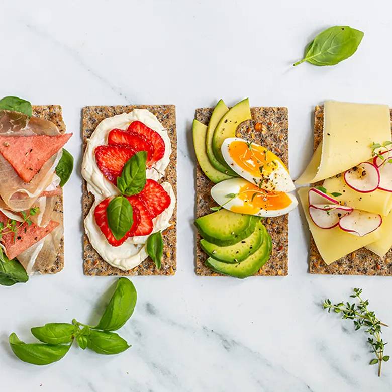 På varme dager er det deilig å ty til noe enkelt og lett når sulten melder seg. Da er knekkebrød med sommerlig topping perfekt. Her er seks digge påleggskombinasjoner.