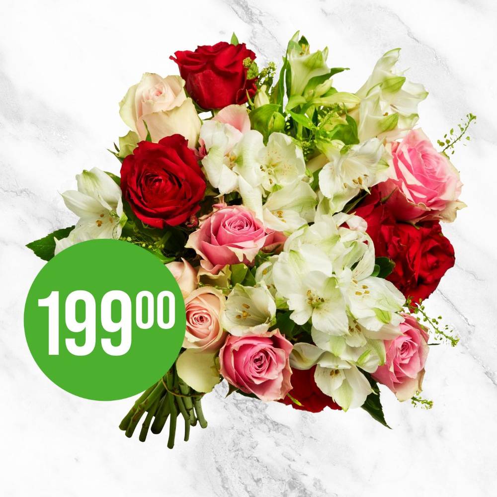 Nå finner du Favorittbuketten i din lokale KIWI-butikk til 199 kroner. Det kommer en ny variant av buketten cirka hver andre uke, men prisen forblir den samme.
