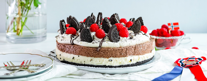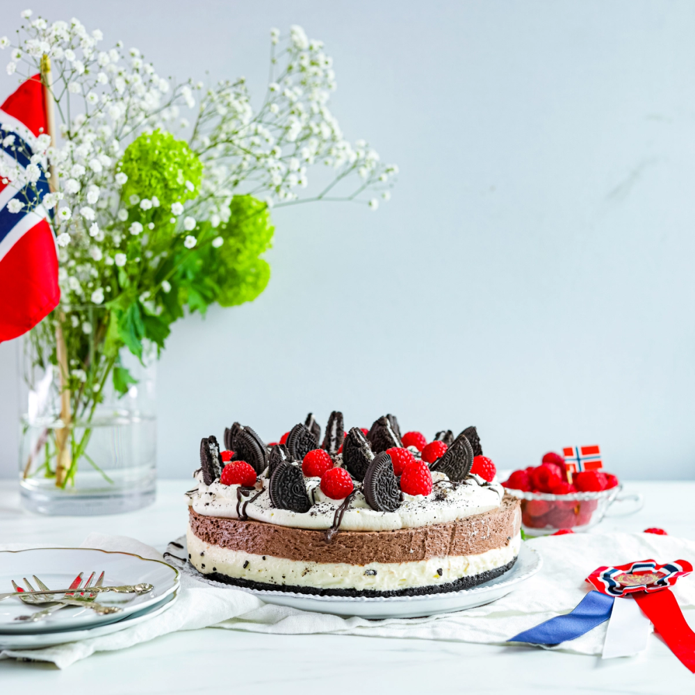 Oreokake har lenge vært et fast innslag på norske kakebord, og populariteten ser ikke ut til å dale. Har du ikke laget den selv før? Med denne oppskriften er det enkelt å lykkes. Topp gjerne med mer bær om du ønsker en frisk og fargerik kake.
