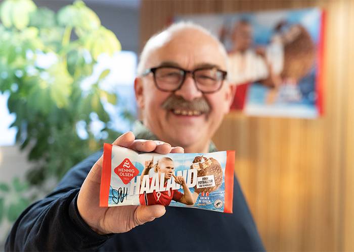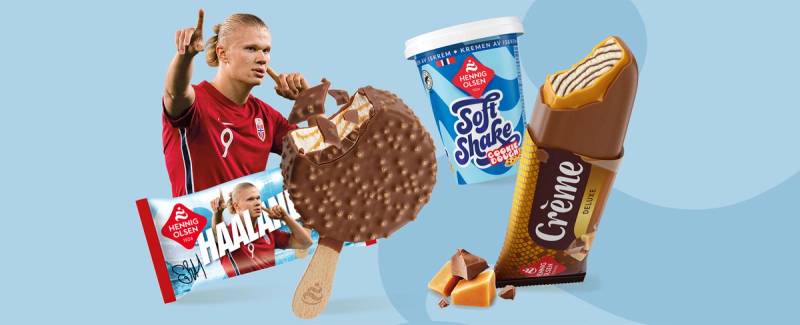 Den største nyheten, Haaland-isen, er allerede blitt godt mottatt av iskremspisende nordmenn. Isen er utviklet i samarbeid med fotballstjernen Erling Braut Haaland og er et resultat av Hennig-Olsens 30 år lange partnerskap med Norges Fotballforbund og et stort engasjement for idretten.