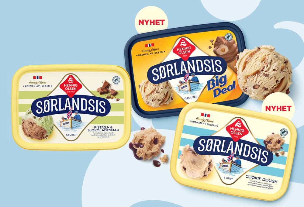 Norges mest spiste dessertis, Sørlandsis, relanseres i forbindelse med jubileet og introduserer tre nye spennende smaker: Sørlandsis Cookie Dough, Sørlandsis Big Deal, og Sørlandsis Pistasj & Sjokoladesmak.
