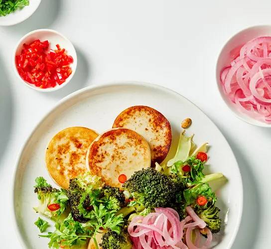 Stekt fiskpudding smaker godt til så mangt, og denne ovnsbakte brokkolisalaten med syltet rødløk er intet unntak.