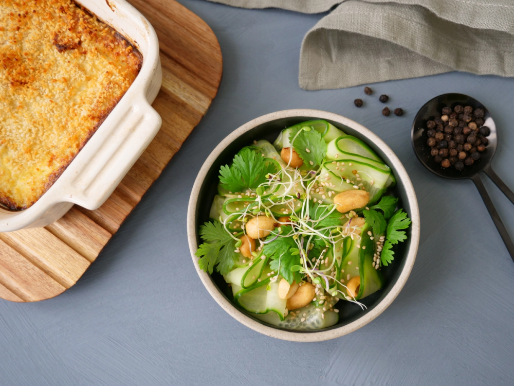 Lag en moderne vri på den klassiske fiskegratengen med en asiatisk agurksalat! Friskt, sunt og kjempegodt. Denne kommer du garantert til å lage igjen.