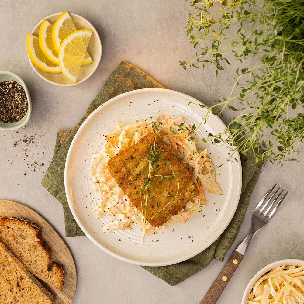 For hvilket tilbehør passer til panert sei? Det trenger ikke koste skjorta. Vi anbefaler en deilig ertepuré, sprø ovnsbakte poteter, hjemmelaget coleslaw med eple, en frisk gulrotsalat og fløyelsmyk potetmos. Her er oppskriftene: