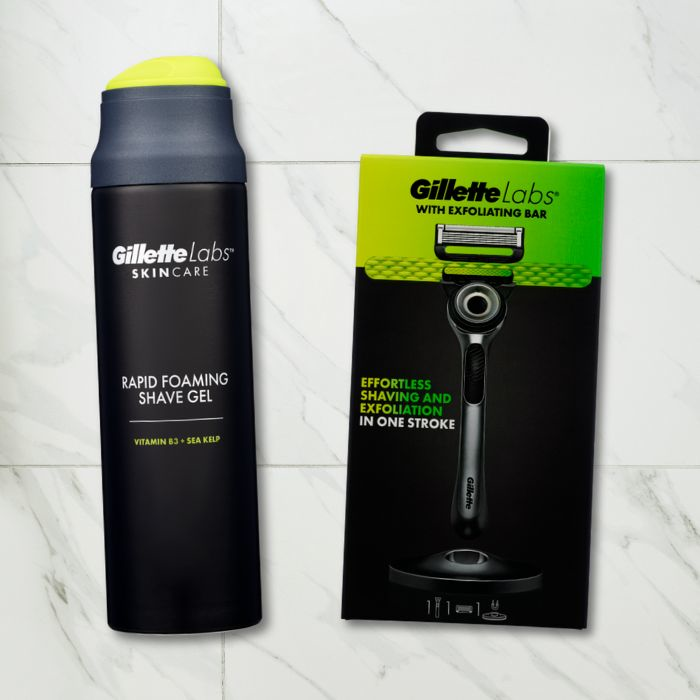 Barber med korte, lette drag, og ta deg god tid. Husk å skylle høvelen ofte for å holde bladene rene. Gillette Labs-høvelen har skarpe blader som sikrer en jevn barbering.