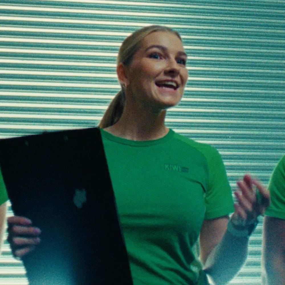 Emma (21) sitter i kassa på KIWI ved siden av sosionomstudiene og har hovedrollen i vår nye reklamefilm. Arbeidsmiljøet, praten med kundene og stadig mer ansvar gjør at hun synes jobben er helt perfekt.