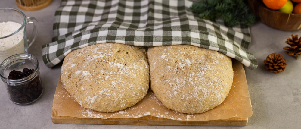 - Elt forsiktig inn 500 g av hvetemelet, salt og appelsinjuice i gjærblandingen. Hev deigen i cirka 30 minutter.
