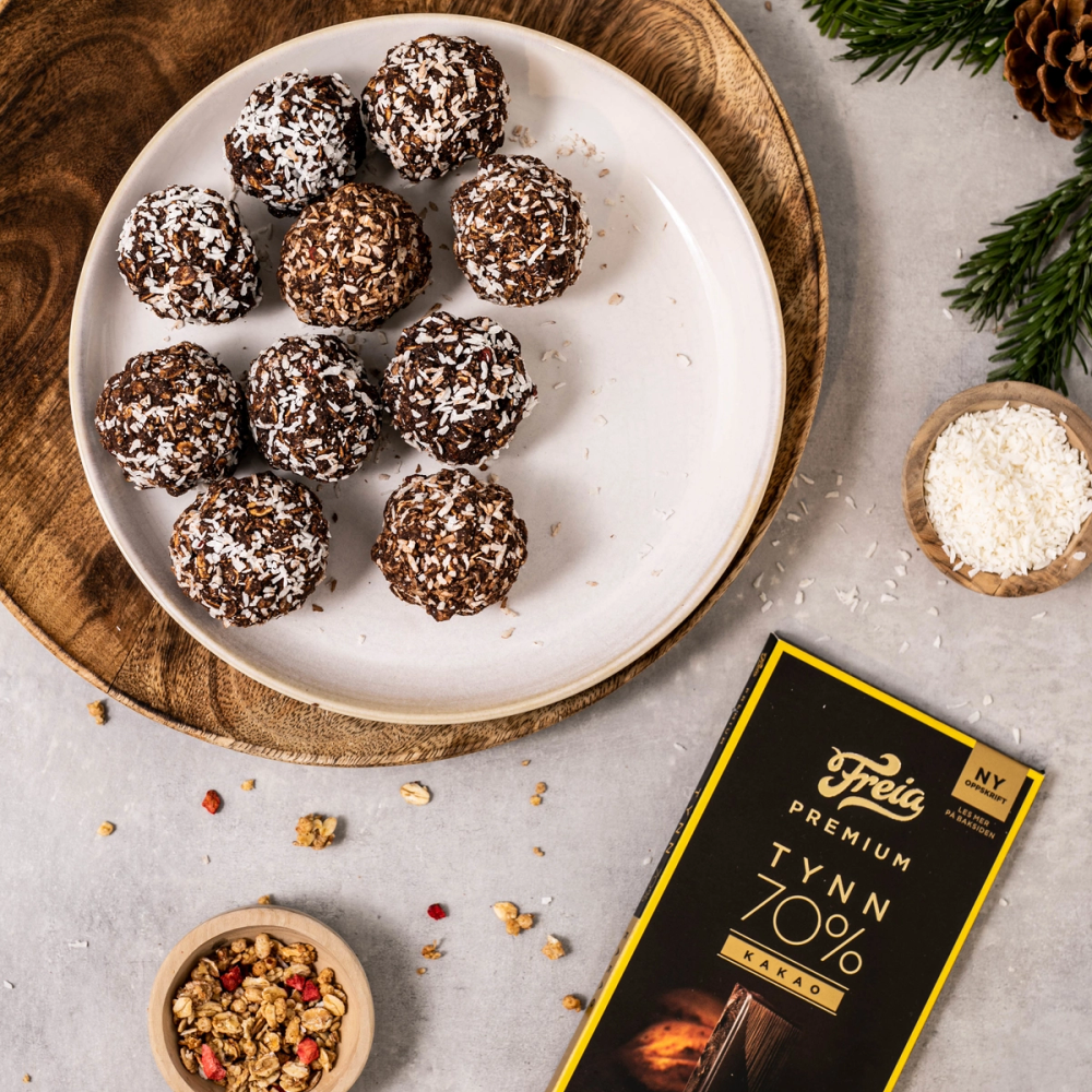 - Sett sjokoladebollene i kjøleskapet til de stivner.