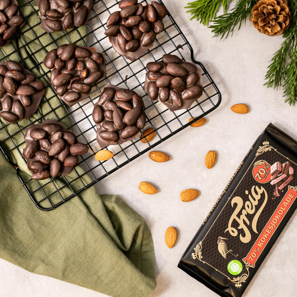 Julekonfekt er en viktig del av julekosen for mange, og det er noe spesielt med dem man har laget selv. Med disse enkle oppskriftene på hjemmelaget julekonfekt med mørk sjokolade, kan du lage julesnacks som er perfekt å gi i julegave til en du er glad i. Putt den spiselige julegaven i en fin eske eller cellofanpose, pynt med en sløyfe og fest på en håndskrevet hilsen, så er gaven i boks!