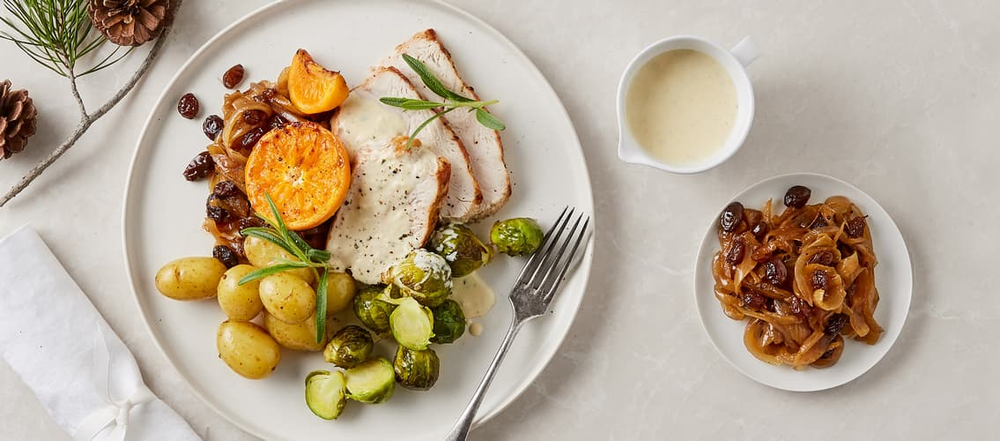 Klinisk ernæringsfysiolog Tine Sundfør.Legg til rosenkål på menyen eller gjør noe nytt med rødkålen, så økes mengden grønnsaker til julemiddagenKalkunfilet med karamellisert løk, rosenkål og kremet orgeganosaus.