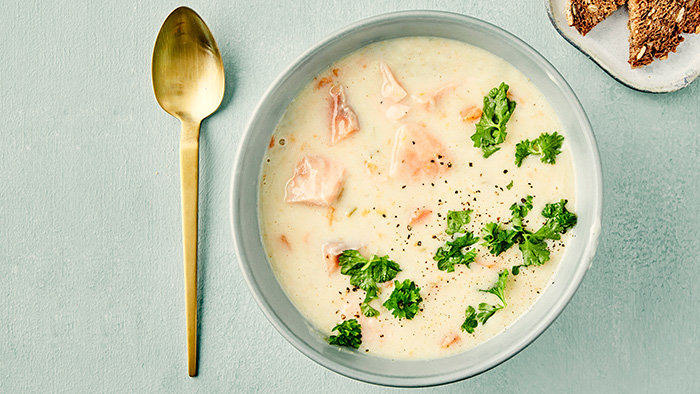 – Basert på at nordmenn spiser for lite fisk og for lite grønnsaker, vil jeg nok likevel anbefale å velge en fiske- eller grønnsakssuppe hvis du skal velge den som er sunnest for deg. Grønnsakssuppen kan enten lages klassisk med grønnsaksbiter eller du kan jevne den til en glatt suppe, sier hun.
