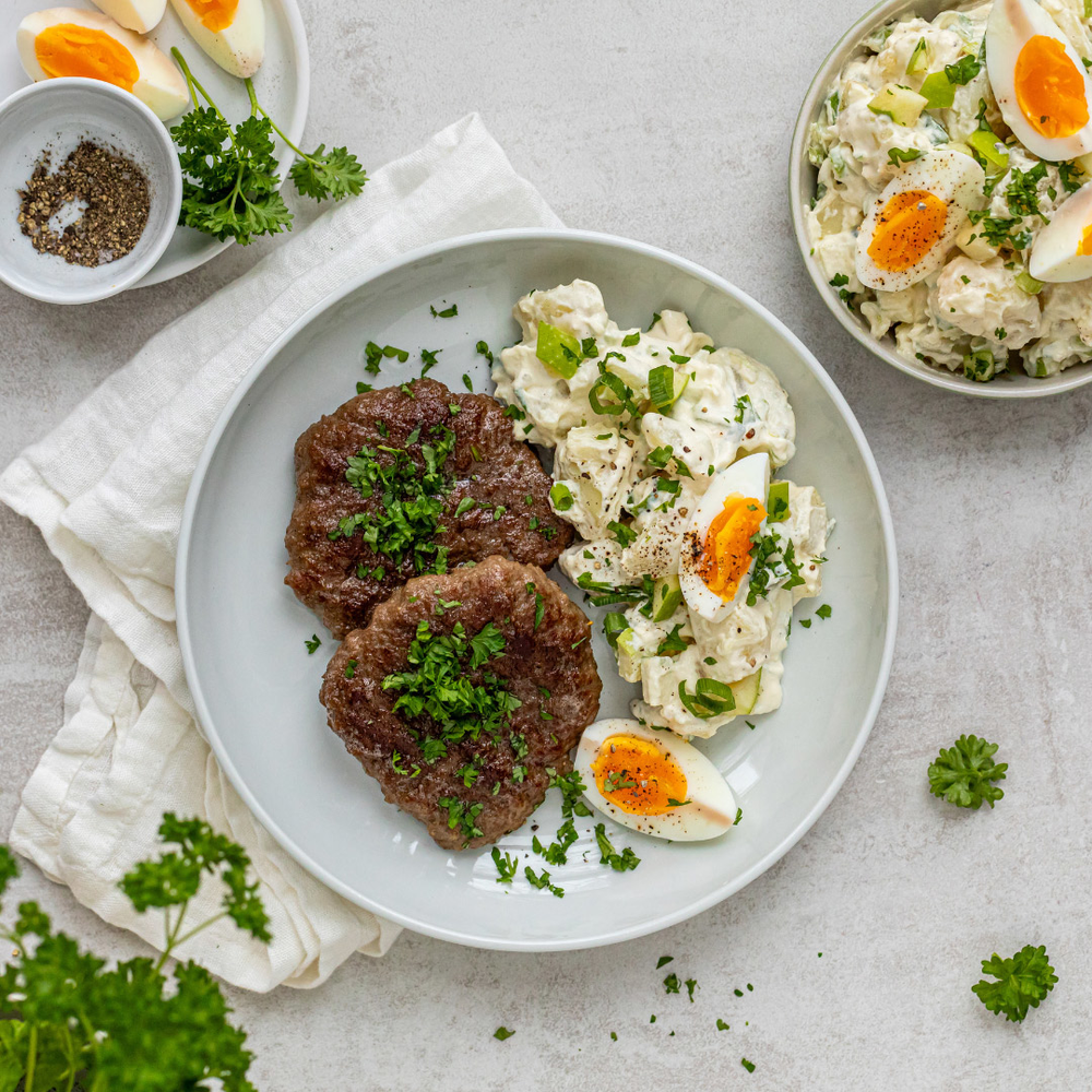 1. Karbonader med frisk potetsalat og egg
