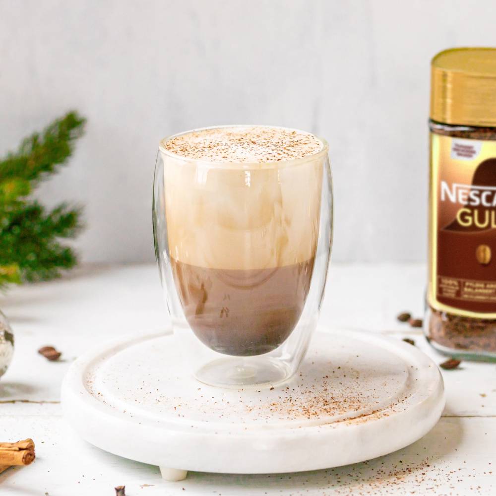 - Bland Nescafé Gull pulverkaffe med krydder og varmt vann. Tilsett honning og rør ut.