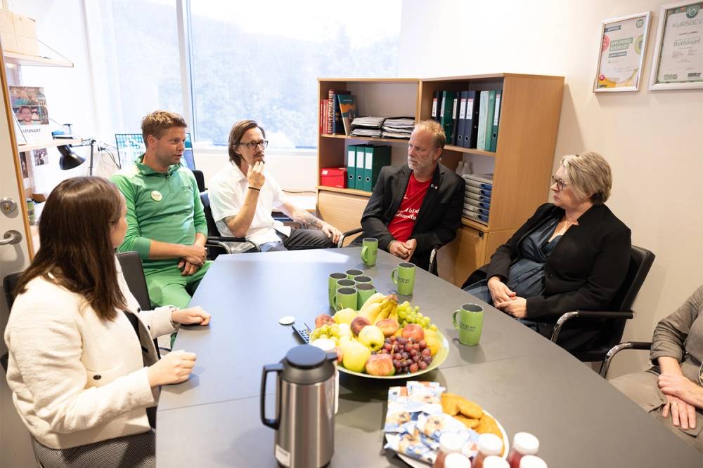 Marte Mjøs Persen, arbeids- og inkluderingsminister, besøkte KIWI Vikersund og butikksjef Lennart Lindberg for å høre hvordan han har lykkes med arbeidsinkludering. – Jeg er veldig imponert over det Lennart har fått til, sier hun.