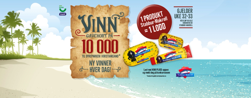 Kjøp et valgfritt produkt fra Stabbur-Makrell og vær med i trekningen av et gavekort på 10 000 kroner til Kristiansand Dyrepark!* Vi trekker en vinner hver dag i perioden 5. august til 18. august!