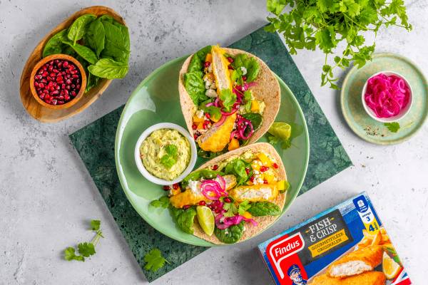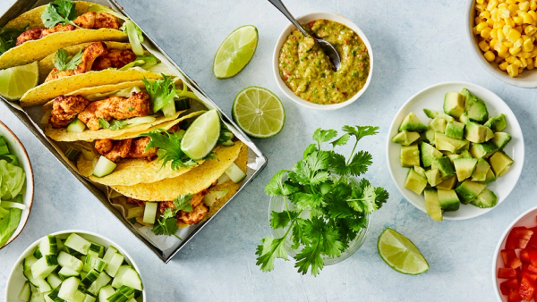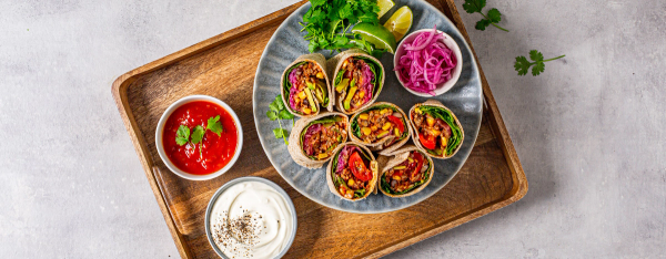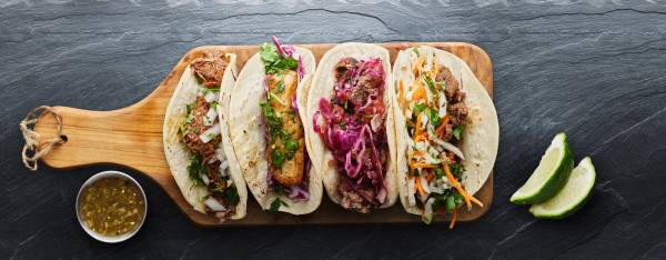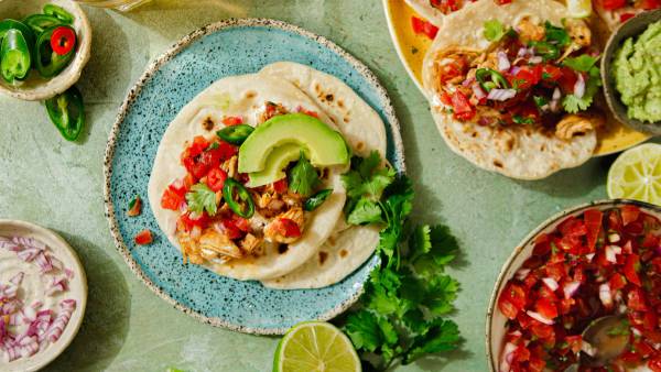 - Fyll fire tortillalefser med tacokrydret kjøtt, fisk, kylling eller bønner og grønnsaker.