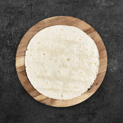 - Legg fire tortillas oppå hverandre. Bruk en saks eller en kniv til å kutte en rett linje fra bunnen opp til midten av lefsene. Legg deretter tortillaene på rekke på en benk.
