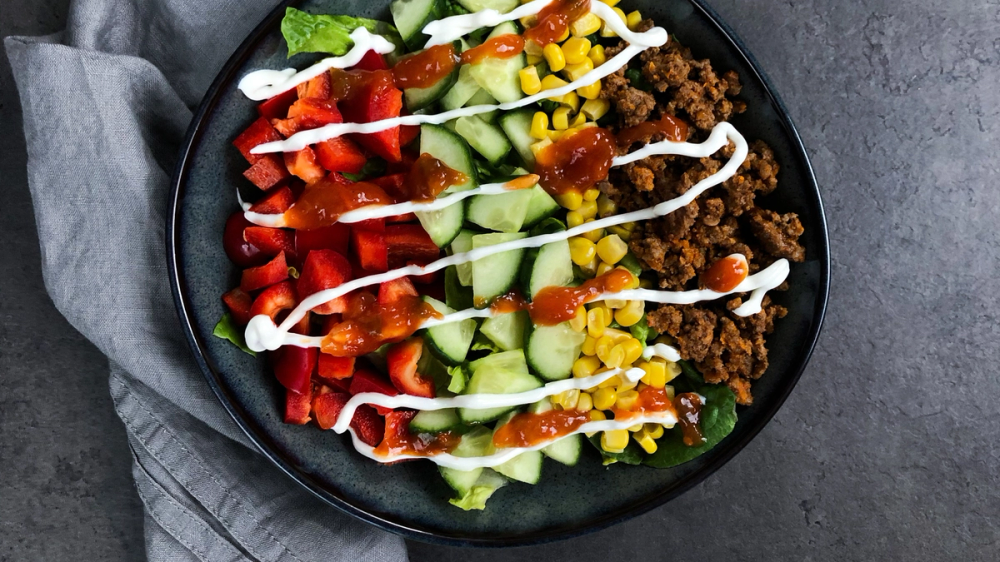 - Topp salaten med tacokrydret kjøttdeig, fisk eller bønner.
