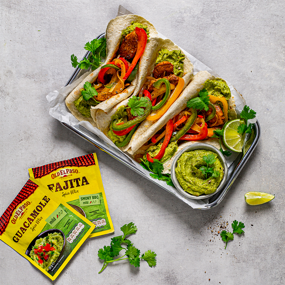 - Mos avokado med en gaffel og rør inn Old El Paso Guacamole Mix. Sett til side.