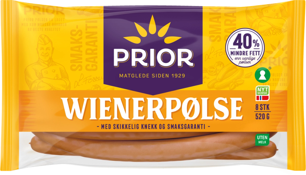 Hakk i hæl følger wienerpølsene fra Prior, som i likhet med vinnerpølsene inneholder lite kalorier og mettet fett. Kjøttinnholdet er også bra.
