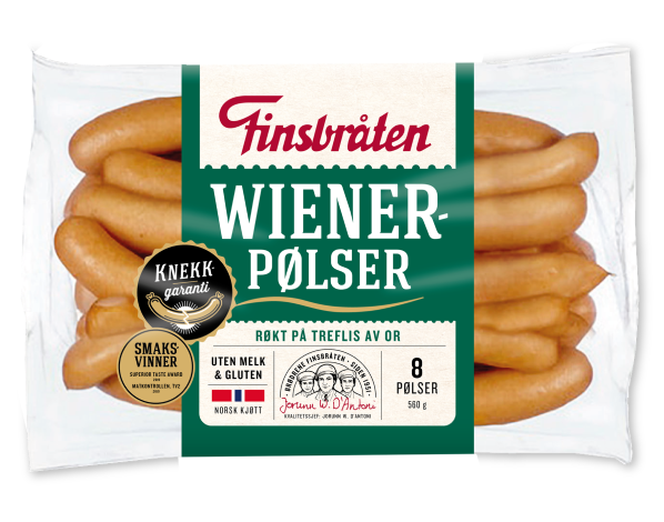 Også pølsene fra Finsbråten inneholder mye kjøtt og protein og greit med salt. De inneholder imidlertid mer fett og kalorier enn vinnerne.