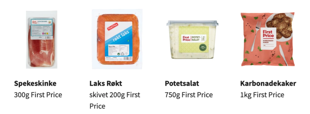 Med gode forberedelser, enkle ideer og produkter fra First Price kan du imponere gjestene dine uten å bruke for mye tid eller penger. First Price er vår egen merkevare og vårt billigste alternativ, og er et godt valg dersom du ønsker å begrense matbudsjettet. At man er prisbevisst betyr ikke at kvalitet ikke er viktig – faktisk har flere av våre First Price-produkter fått høy score eller har blitt kåret til best i test i flere uavhengige tester. Ikke er de mindre sunne heller.