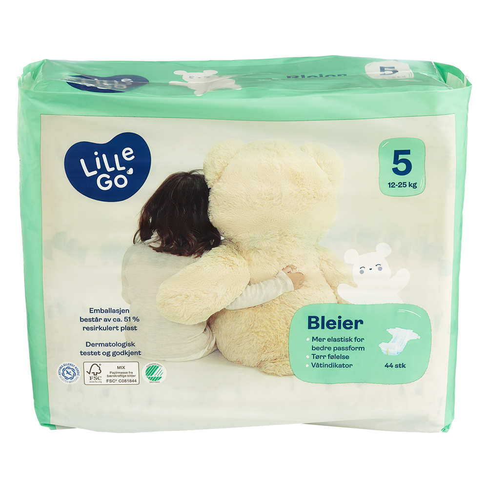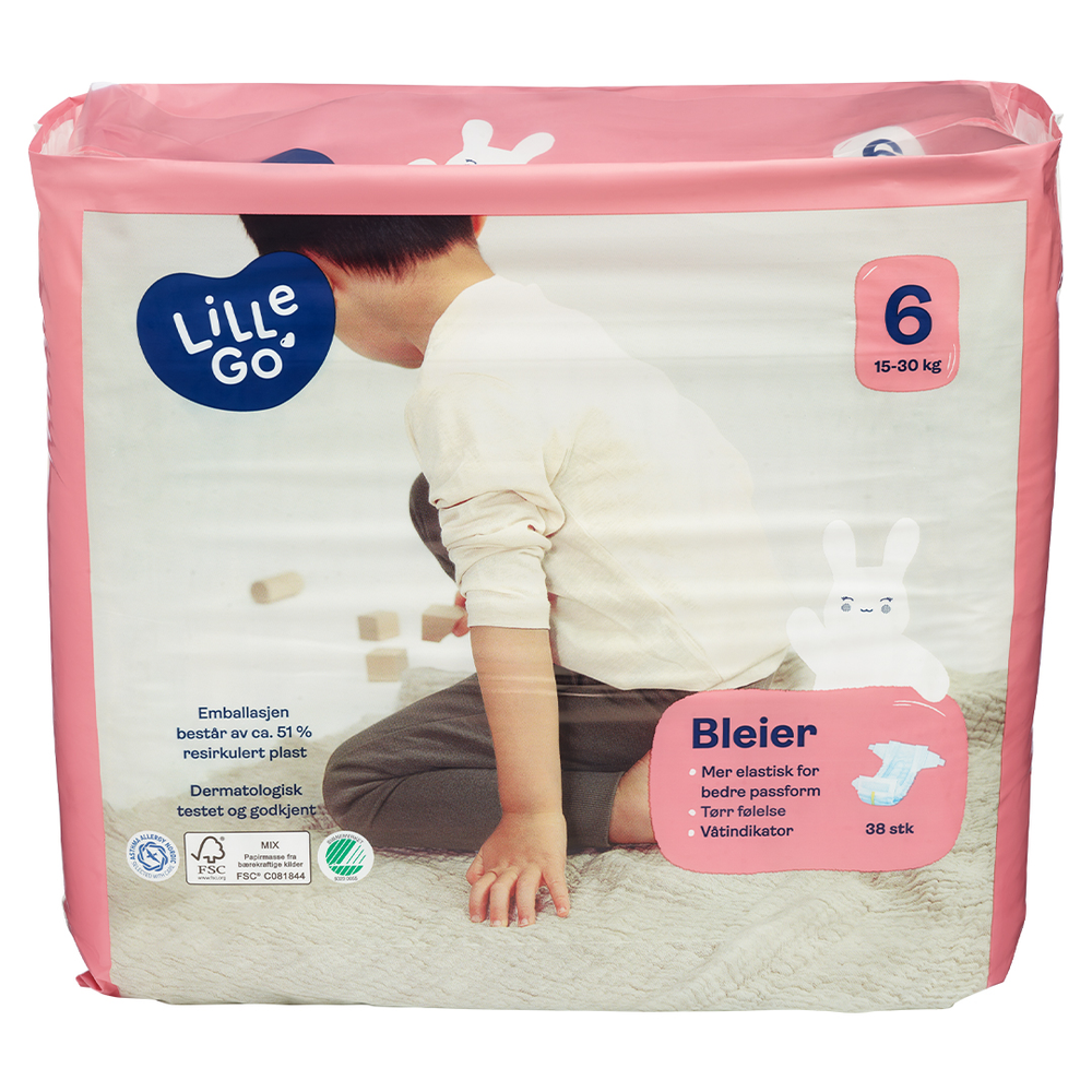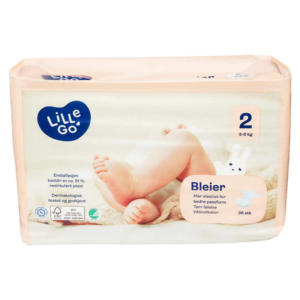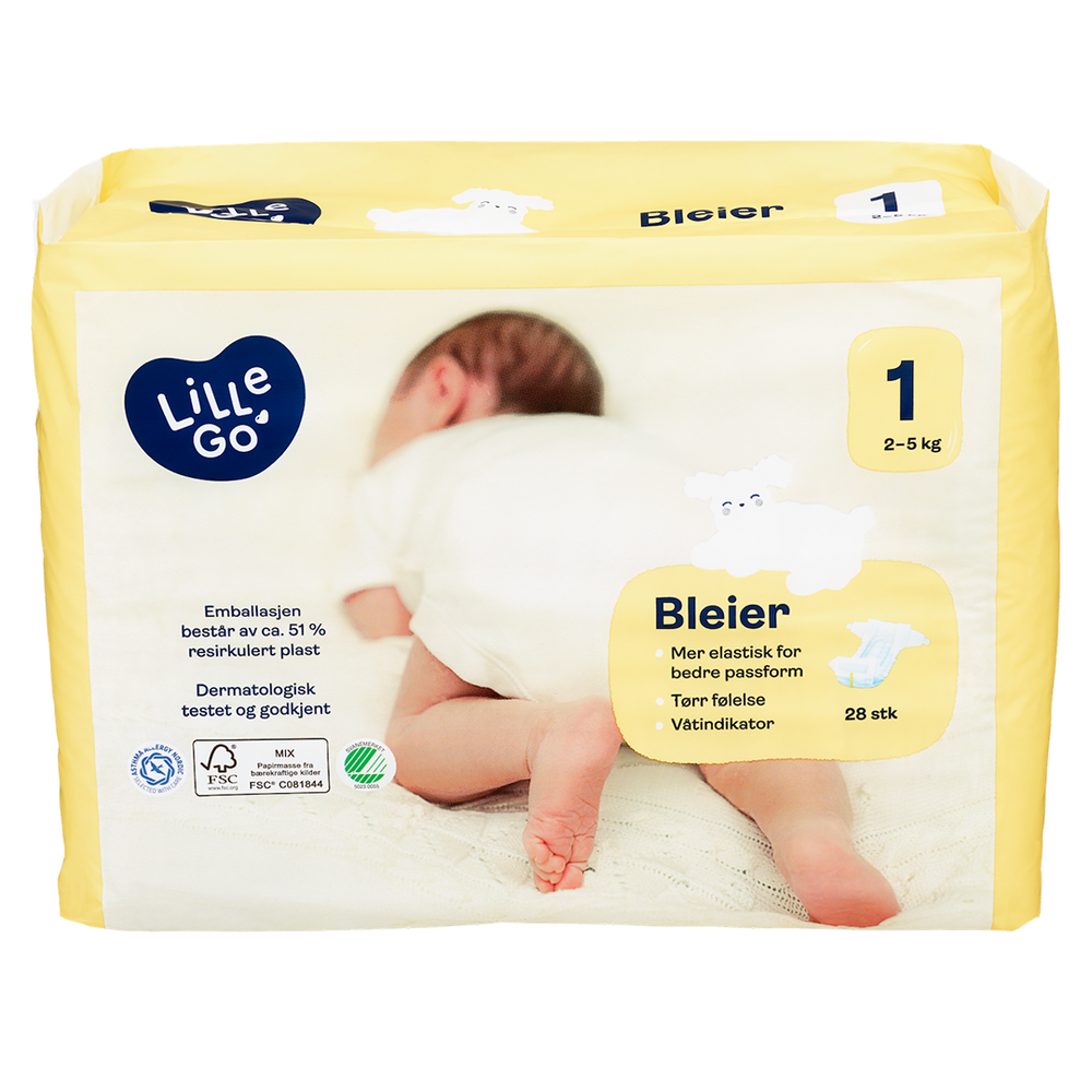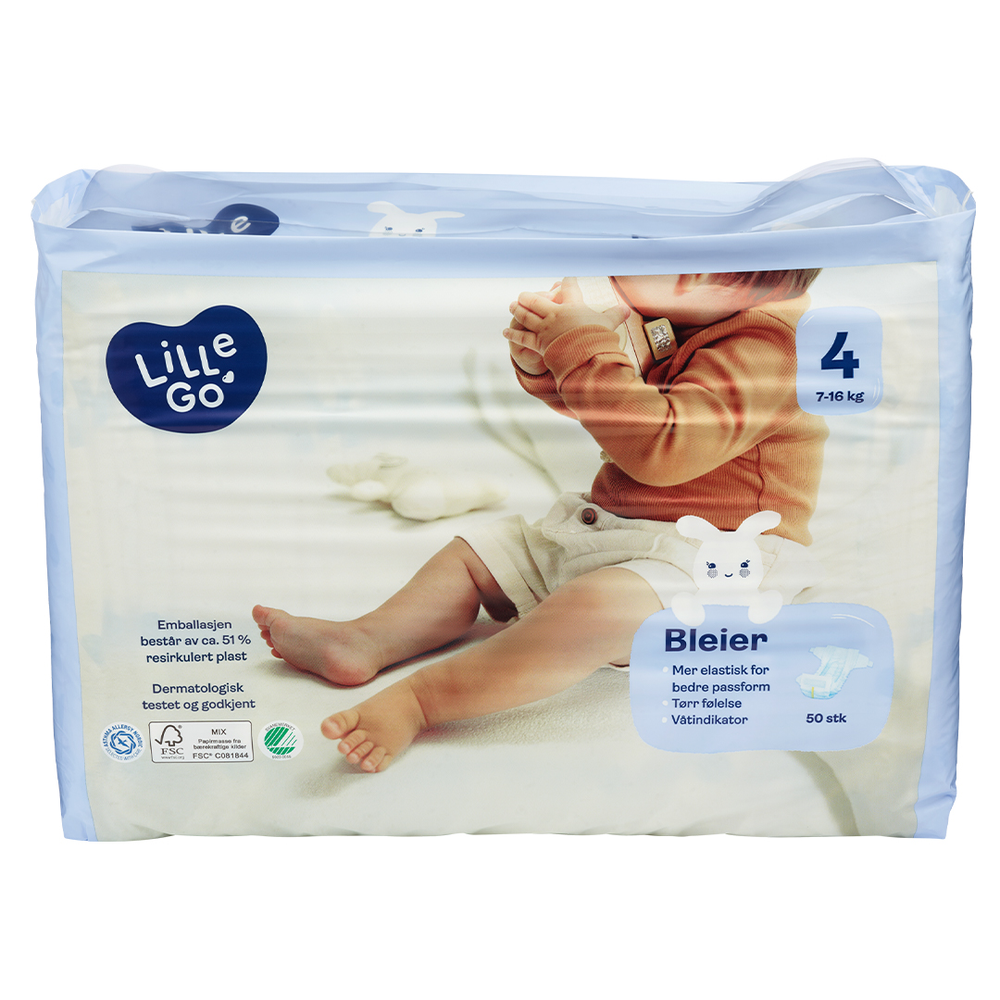 Bleiene kommer i syv ulike kategorier, fra LilleGo' Mini for de aller minste til LilleGo' Buksebleie XL, til store og aktive barn. Alle bleiene har anti-lekkasjesperrer som effektivt hindrer lekkasje. Den er tynn, men har likevel en superabsorberende kjerne med mykt toppsjikt, som gir barnet en tørrere følelse. Bleiene er laget av et pustende materiale som er dermatologisk testet, og som minsker risikoen for bleieutslett og ubehag.