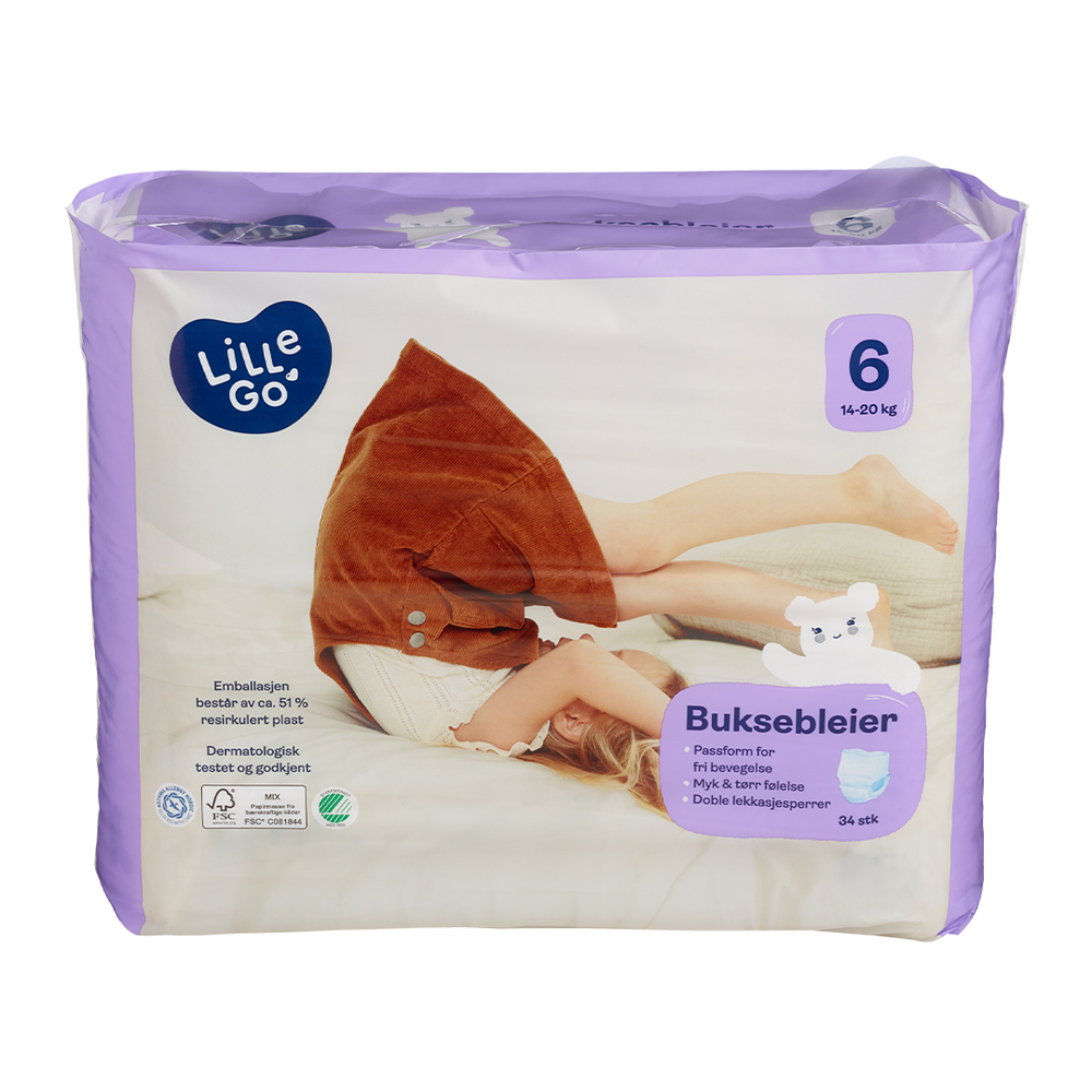 - LilleGo´ Buksebleie str. 6, 34 stk, 14-20 kg