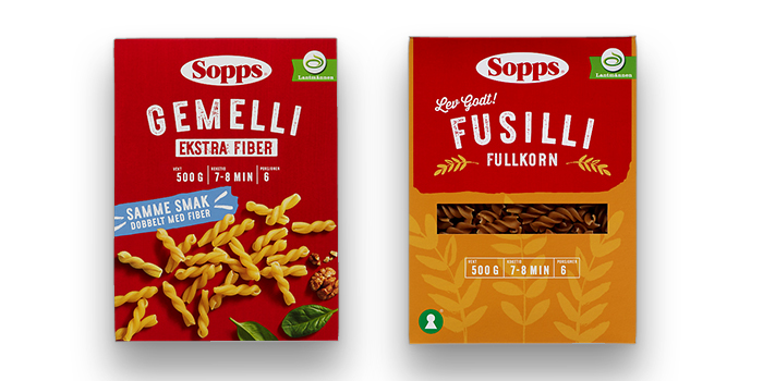 Nyheten Sopps Gemelli er en hvit pasta med ekstra fiber. Foretrekker du fullkornsvarianten, finner du også Sopps Fusilli fullkorn i alle KIWI-butikker.
