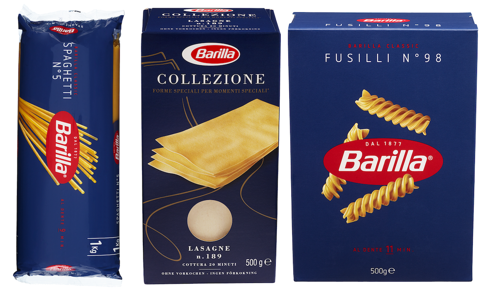 Svar: Det kommer helt an på type pasta. Tørr pasta består som regel av vann og mel, mens fersk pasta er laget med egg (og evnt. olje). God pasta produseres som regel av 100 prosent durumhvete. Dette er en kvalitetshvete som dyrkes i Sør-Europa, har et høyt proteininnhold og passer spesielt godt til produksjon av pasta. Barilla er blant produsentene som bruker durumhvete i sin pasta, på ekte italiensk vis.
