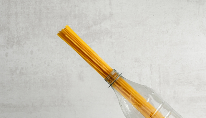 Du kan enkelt lage ditt eget spaghettimål ved å skru av korken på en 1,5 liter plastflaske. Hullet i flasken gir cirka 100 gram spaghetti.