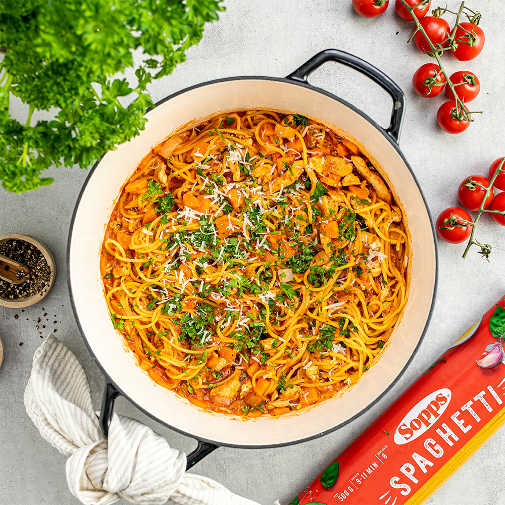 Spaghetti er et supert utgangspunkt for raske og enkle hverdagsmiddager, eller til helgekosen med en ekstra god saus. Lager du den med one pot-metoden sparer du deg i tillegg for både tid og oppvask.