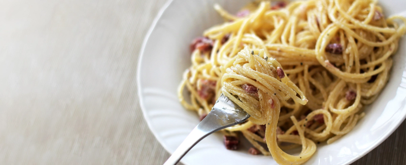 Carbonara er den mest kjente pastaoppskriften i verden. Men en uformell undersøkelse gjort av Barilla viser at mange glemmer å nevne pasta når de blir bedt om å liste opp alle ingrediensene i en carbonara. Men uten pasta, blir det jo slett ingen carbonara! Lurer du på hvilken pastatype som egner seg best til denne retten? Ada Rolsdorph Braaten i Barilla kan fortelle at lang og tynn pasta, som for eksempel spagetti, er optimal.