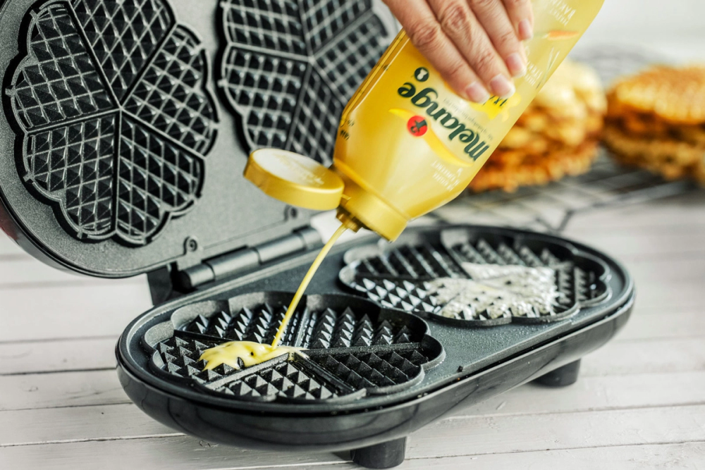Er du glad i vafler er det greit å vite at du kan sprute litt flytende Melange rett i vaffeljernet i stedet for å bruke pensel. Gjerne mellom hver andre eller tredje vaffel. Det gir vaflene fin farge og god skorpe, samtidig som du unngår at de setter seg fast i vaffeljernet.