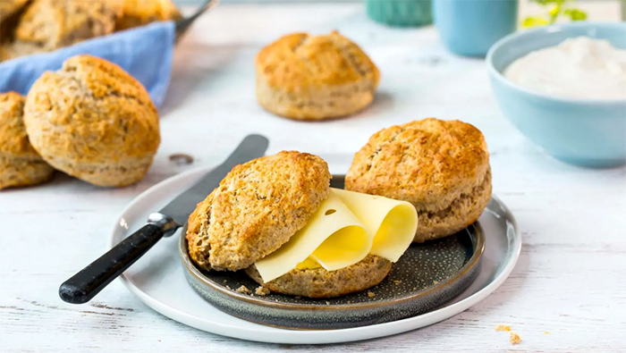 Grove scones lager du enkelt på en halvtime, da disse ikke trenger å heve. Husk bare å bruke nok væske. Foto: TINE kjøkken
