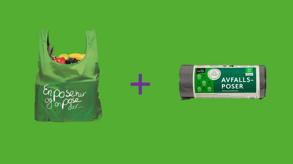 Svaret er enkelt: Avfallsposer på rull. Avfallsposene på rull er tynnere, og flere varianter er laget av mer resirkulert plast enn bæreposene. Dermed blir det mindre plast for hver søppelpose man kaster. I tillegg er de vesentlig billigere per pose – du sparer altså både penger og miljø ved å bruke dem til avfallet.