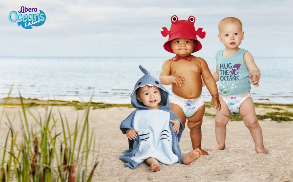 Det å ta med babyen på stranden er ikke noe problem, og med nye Libero Ocean Edition er også babyen klar for sommer, sol og strandliv. Med disse bleiene støtter Libero lokale organisasjoner og deres arbeid for havene, og på den måten bidrar Libero, vi hos KIWI og dere forbrukere sammen til at det blir rene hav også når barna skal på stranden i fremtiden.