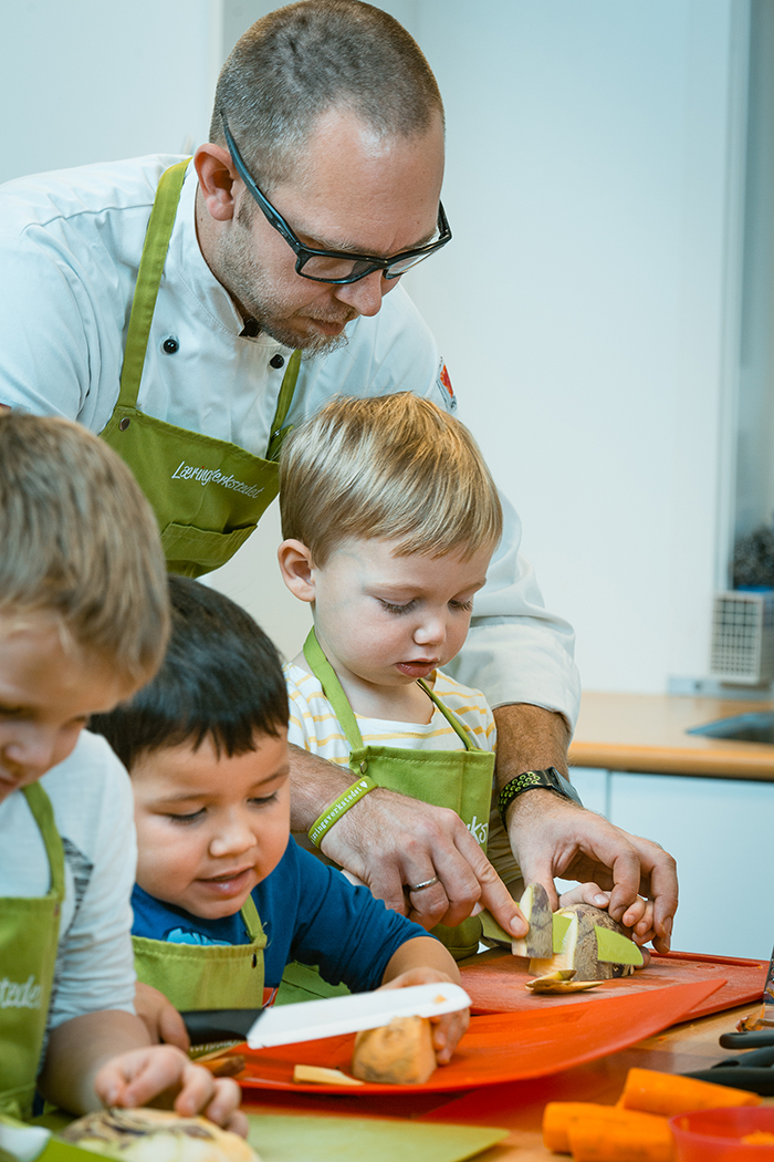 Knivene skal være tilpasset barn, slik at de er gode å holde i for små barnehender. Husk også at skarpe kniver er tryggere enn sløve.