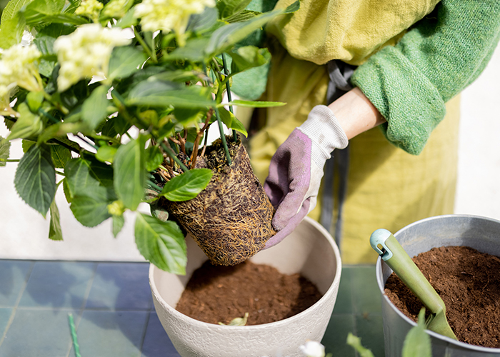 Hortensia foretrekker godt drenert jord. Beholder du planten i potten den er kjøpt i, kan det være lurt å legge lecakuler i bunnen for god drenering. Hvis du planter hortensia, bland inn kompost eller torv for å forbedre jordkvaliteten. Sørg for at plantene har nok plass til å vokse, de kan bli ganske store.