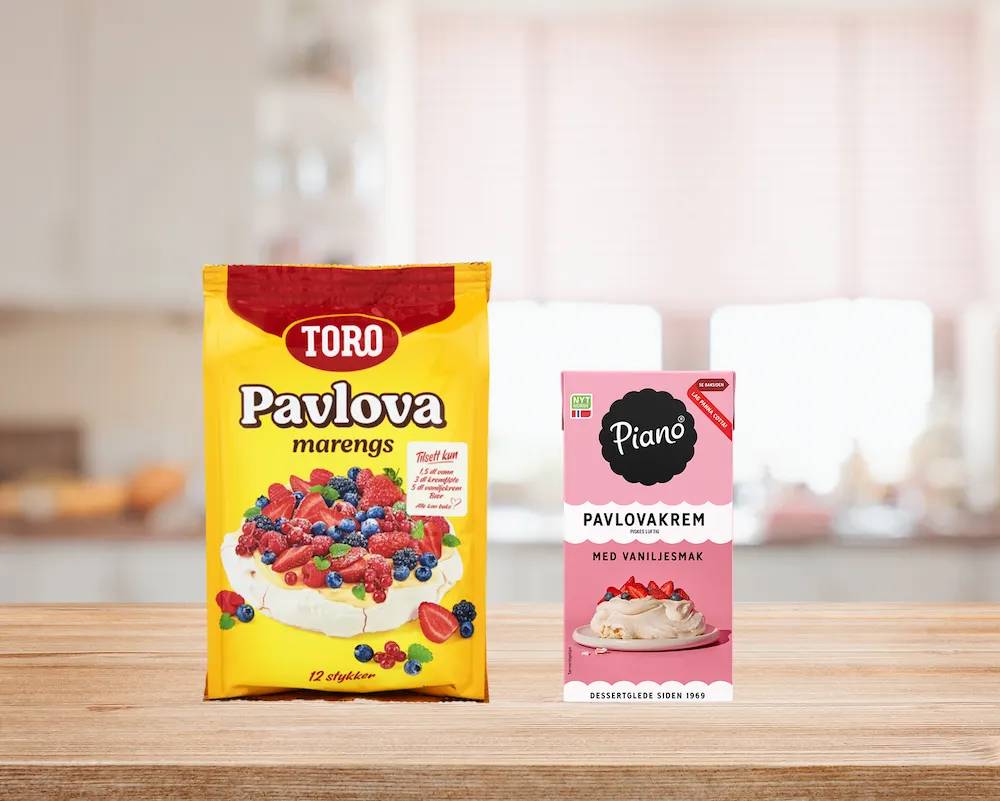 2.Tilbered pavlovakremen etter anvisning på pakningen og bre utover marengsbunnen rett før servering.