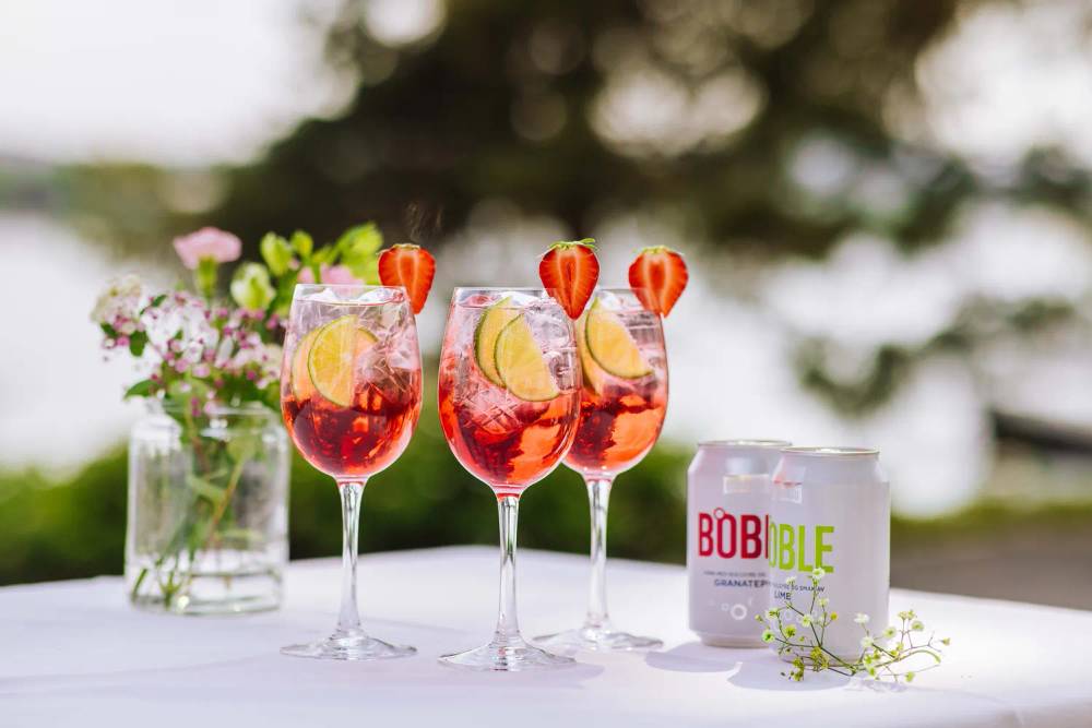– Pynt gjerne med bær, frukt og urter. I denne årstiden er det mye du kan putte i glasset eller bruke som garnityr - som både smaker godt og ser bra ut. For eksempel jordbær, lime og basilikum, sier hun og fester et halvt jordbær på kanten av glasset.