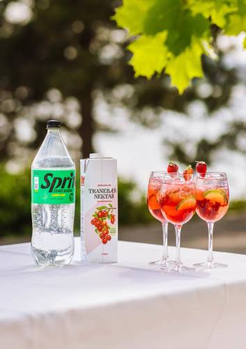 – Brus kan også brukes for å gi drinken litt kullsyre. Sprite uten sukker funker for eksempel veldig godt kombinert med andre smaker, som din foretrukne juice eller iste. I dag går vi for tranebærnektar, sier Martine.