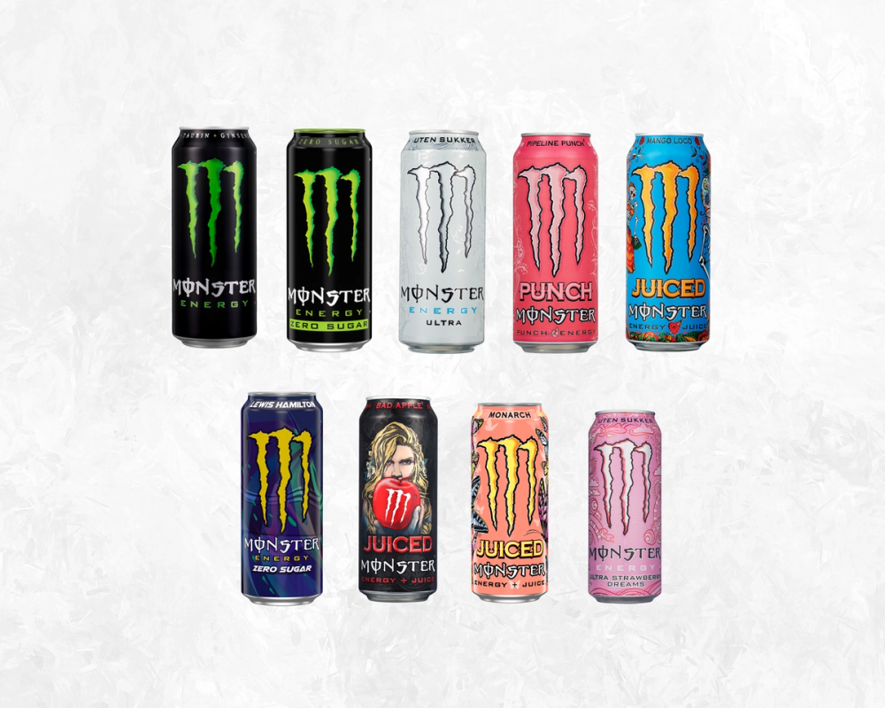 I tillegg til nyheten Monster Ultra Strawberry Dreams finner du et bredt utvalg av Monster hos KIWI, både med og uten sukker. Monsters energidrikker inneholder i tillegg kullsyre og taurin, og en rekke vitaminer og ekstrakter som bidrar til den karakteristiske Monster-smaken.