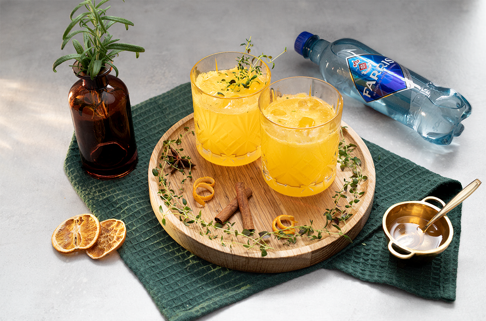Klementiner er noe de fleste har liggende hjemme i julen. Sammen med ingefær, Farris og timian har du et perfekt utgangspunkt for en frisk og sprudlende julemocktail. Server den før julemiddagen eller på julebordet med venner.