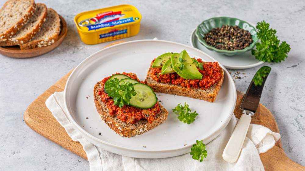 Selv om makrell i tomat smaker nydelig alene, passer det også utmerket sammen med avokado, agurk, rødløk eller basilikum. Hvis du føler deg inspirert, kan du i tillegg sylte rødløken. Dette er alle smaker som går ypperlig sammen med makrellen. Bare pass på å tygge før du svelger, for ja, det er så godt at man kan risikere å bare sluke skiva.