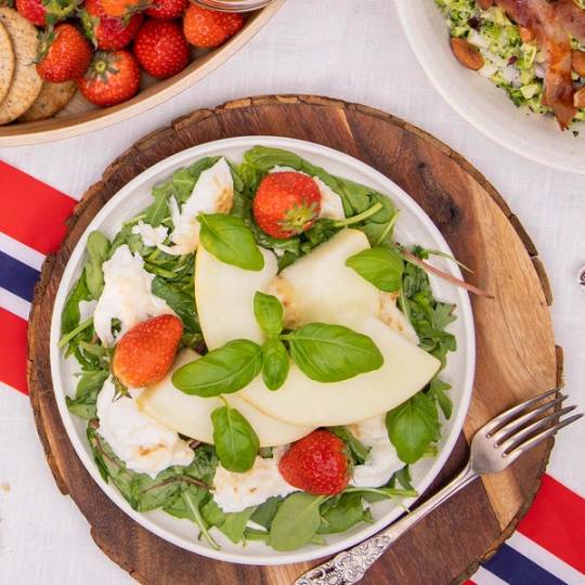 4. Server gjerne med jordbær og basilikum for en friskere salat.