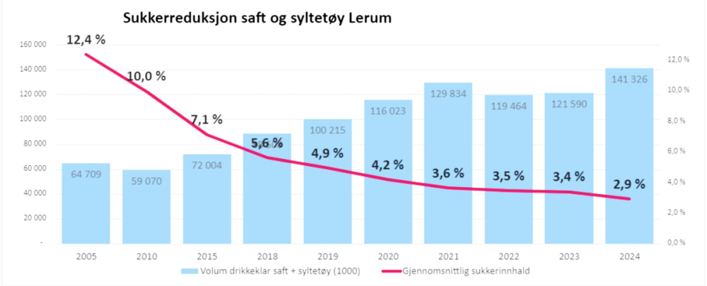 – Dette betyr at vi reduserer sukkerkonsumet i norske familier med minst 10 tonn i 2025, legger hun til.
